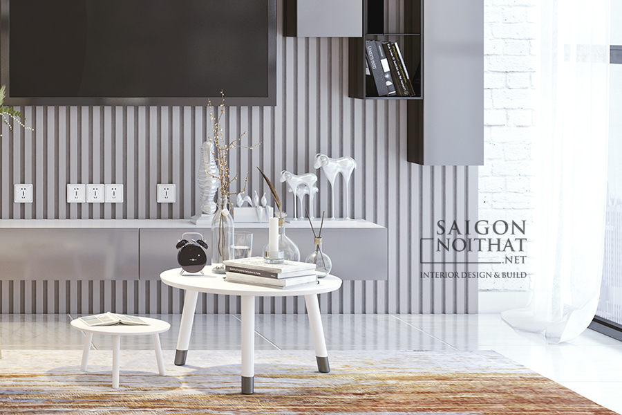 Thiết kế căn hộ THE ASCENT Thảo Điền, Quận 2 theo phong cách Scandinavian với tông màu hiện đại, các chi tiết trang trí được chăm chút tỉ mỉ vô cùng tinh tế. Không gian từ cửa chính bước vào được tô điểm bởi một dãy bàn và tranh trang trí hiện đại tone vàng đồng sang trọng.